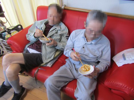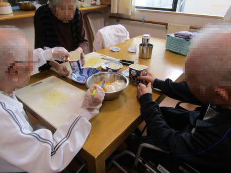 フルーツも食べやすいように一口サイズに切って頂き、味も利用者様達に確認してもらいながら行いました!