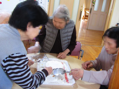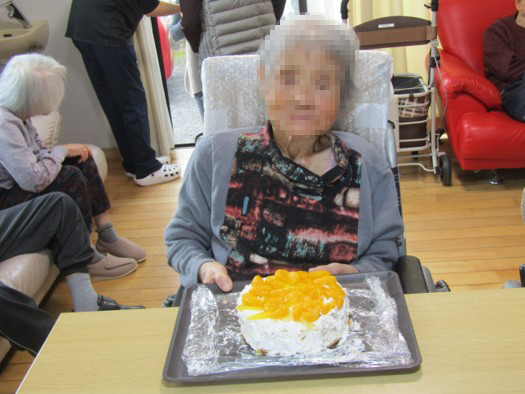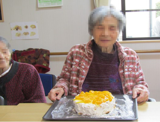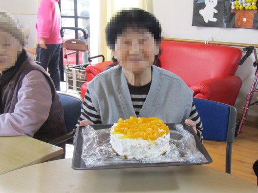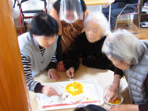 そして11月はクリスマスケーキ作りの練習もかねて、誕生日会のケーキをスポンジから生クリームを利用者様に塗っていただきました!皆様、飾りつけもやはりお上手です…!